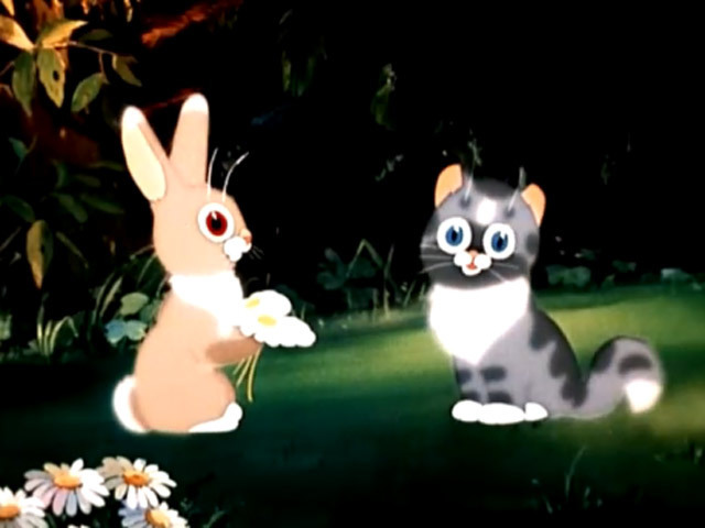 Непослушный котенок убегает от девочки в лес, встречает там Бельчонка, Зайчонка и Ежика и уговаривает их отправится на прогулку без разрешения старших. Малыши чуть не попадают в беду, но их выручает старый Заяц.Режиссер: М. Пащенко.